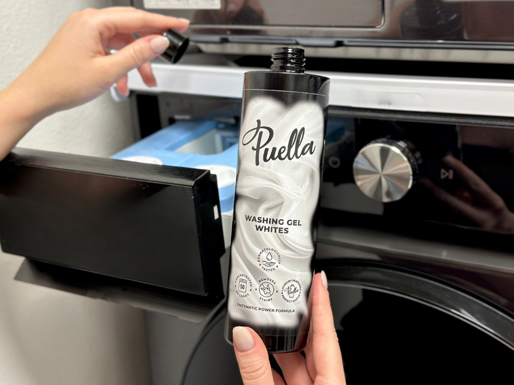 • Jemná vôňa pracieho gélu dokonale ladí s parfumom na pranie Puella.