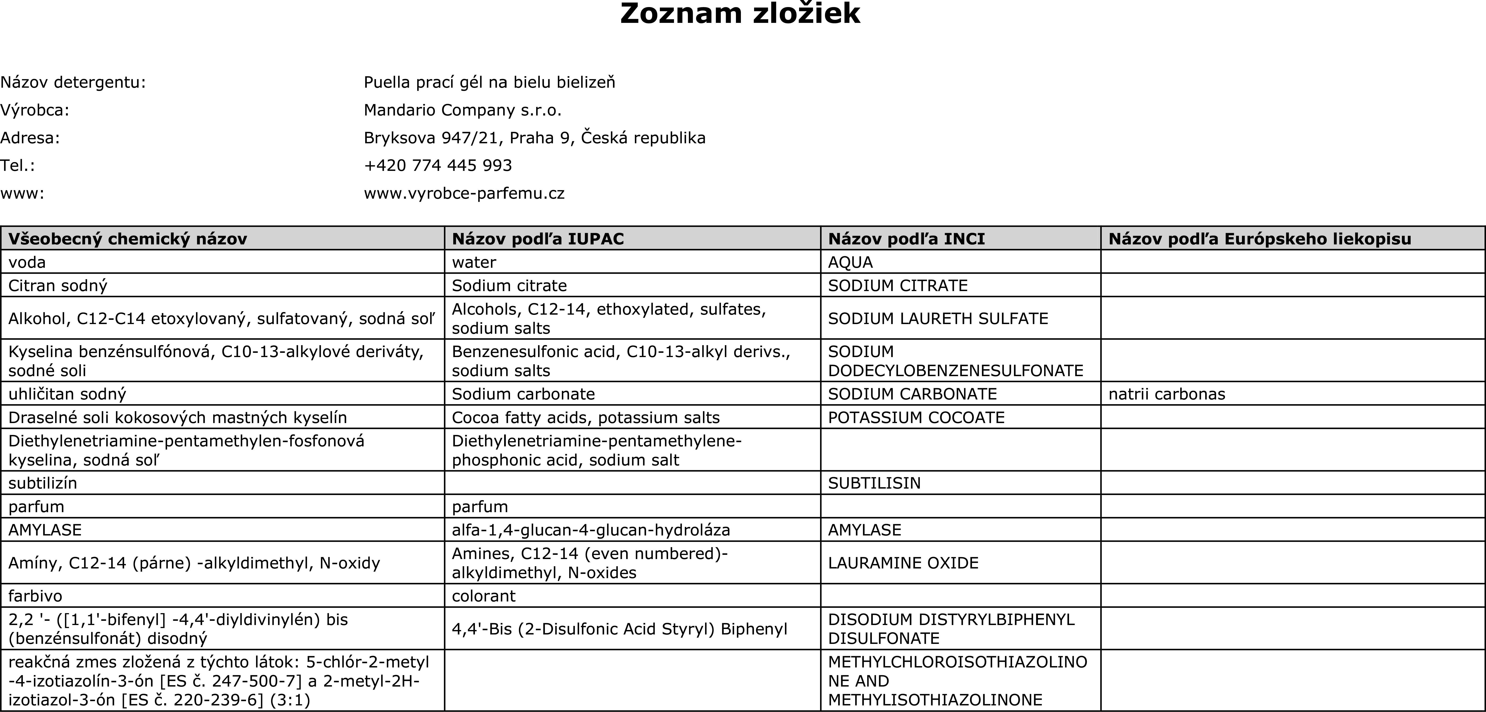 Vlastnosti pracieho gélu Puella na bielu bielizeň: