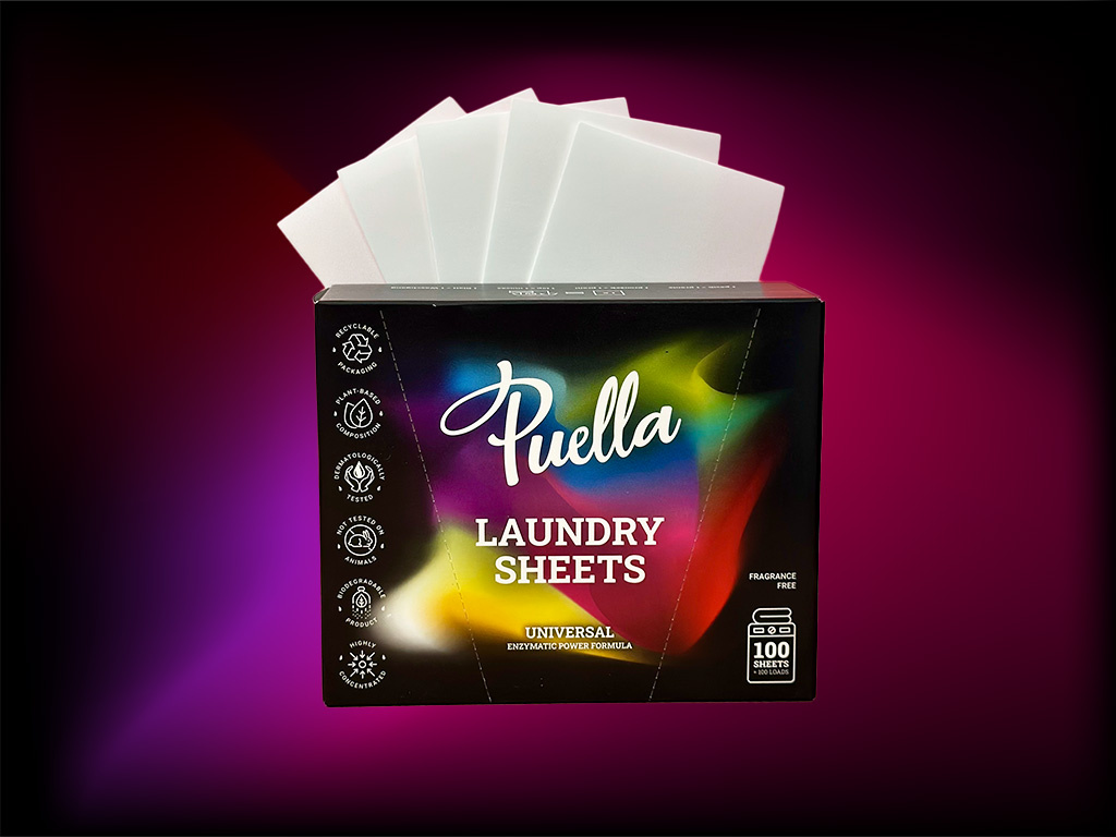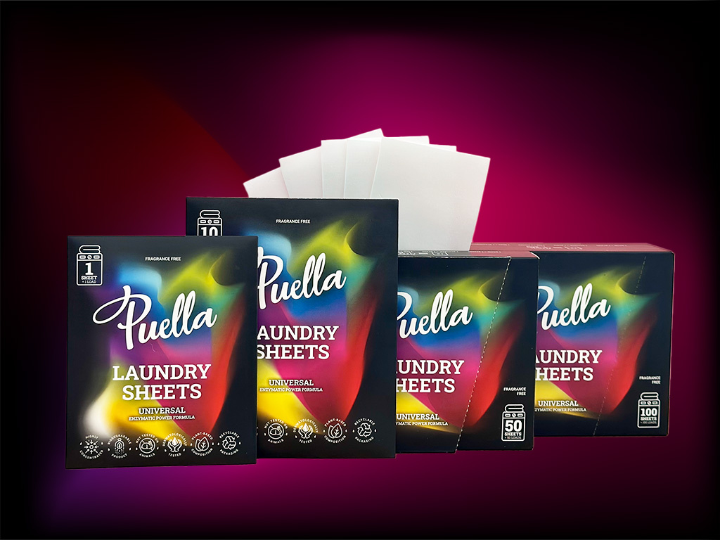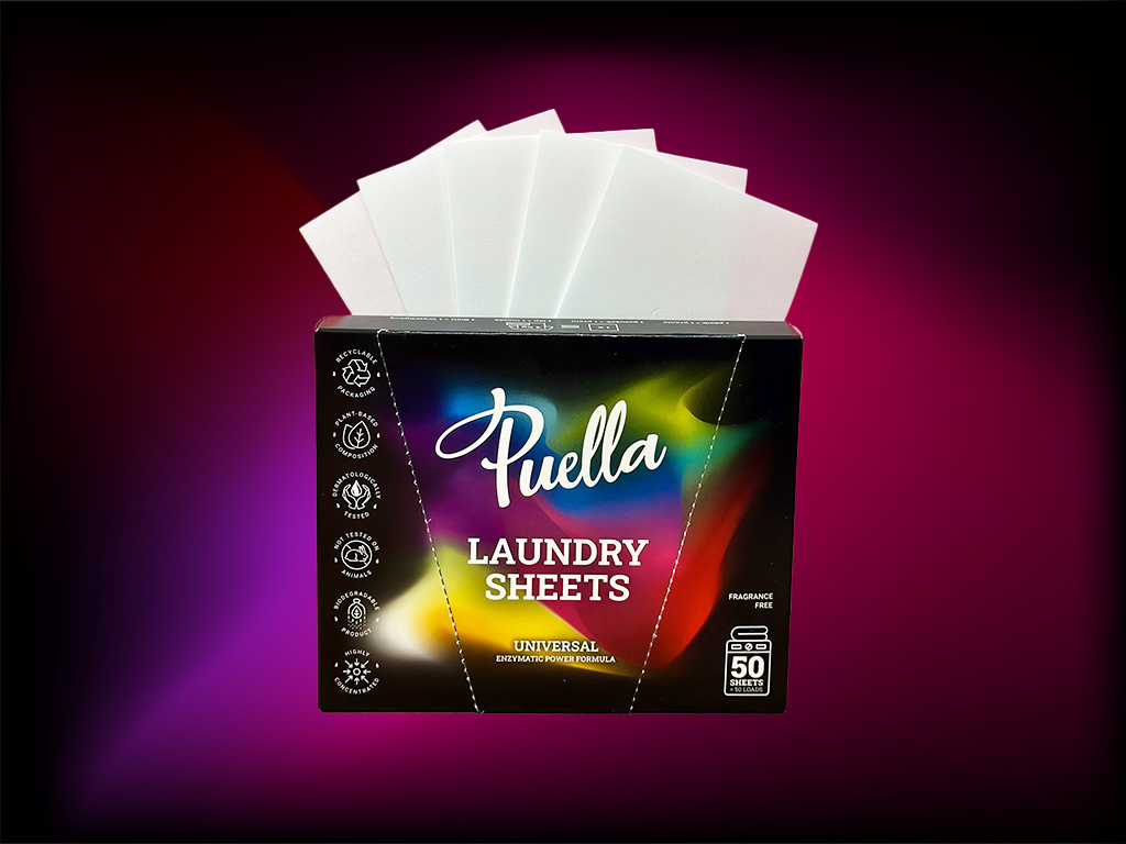 Zažite čistiacu silu Puelly v novom formáte! Naše papieriky na pranie obsahujú rovnako vysokú koncentráciu účinných látok ako náš populárny gél, no v ešte menšom a ekologickejšom balení.