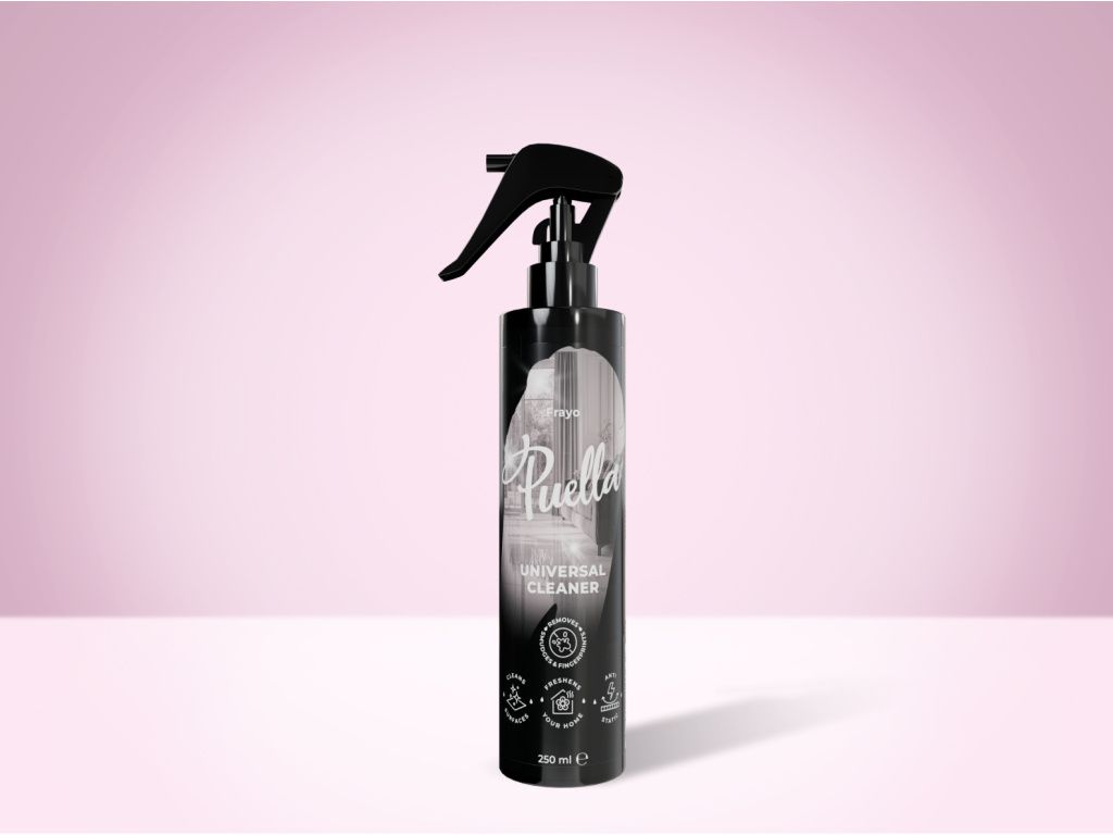 Puella univerzálny čistič s vôňou Frayo a vyváženým pH. Jemne a účinne čistí všetky povrchy, odstraňuje prach, šmuhy aj odtlačky a prevonia váš domov vašou obľúbenou vôňou.