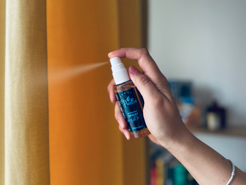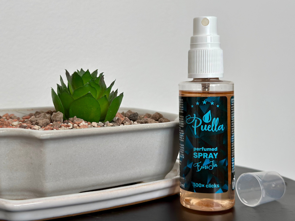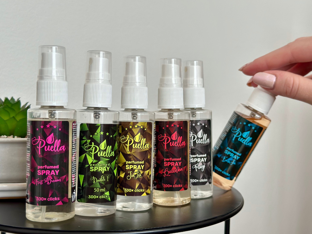 UNIVERZÁLNY BYTOVÝ PARFUM. Puella vône v podobe sprejov na každodenné použitie. Špeciálny parfum vyvinutý pre domácnosť. Vhodné na textil, gauč, do auta alebo na prevoňanie interieru. Nebezpečenstvo! Zloženie: Benzyl-salicylát, 1-(1,2,3,4,5,6,7,8-oktahydro-2,3,8,8-tetrametyl-2-naftyl)etan-1-on, hexyl-škoricový aldehyd, piperonal, linalool, linalyl-acetát, 2-metyl-3-(3,4-methylendioxifenyl)propanal. Môže vyvolať alergickú kožnú reakciu. Škodlivý pre vodné organizmy, s dlhodobými účinkami. Uchovávajte mimo dosahu detí. Ak sa prejaví podráždenie pokožky alebo sa vytvoria vyrážky: vyhľadajte lekársku pomoc/starostlivosť. Odstráňte obsah/obal podľa štátnych predpisov.
