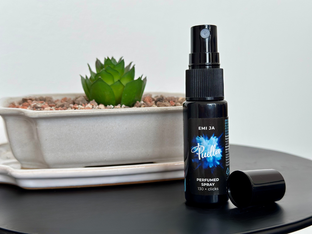UNIVERZÁLNY BYTOVÝ PARFUM. Puella vône v podobe sprejov na každodenné použitie. Špeciálny parfum vyvinutý pre domácnosť. Vhodné na textil, gauč, do auta alebo na prevoňanie interieru. Nebezpečenstvo! Zloženie: Benzyl-salicylát, 1-(1,2,3,4,5,6,7,8-oktahydro-2,3,8,8-tetrametyl-2-naftyl)etan-1-on, hexyl-škoricový aldehyd, piperonal, linalool, linalyl-acetát, 2-metyl-3-(3,4-methylendioxifenyl)propanal. Môže vyvolať alergickú kožnú reakciu. Škodlivý pre vodné organizmy, s dlhodobými účinkami. Uchovávajte mimo dosahu detí. Ak sa prejaví podráždenie pokožky alebo sa vytvoria vyrážky: vyhľadajte lekársku pomoc/starostlivosť. Odstráňte obsah/obal podľa štátnych predpisov.