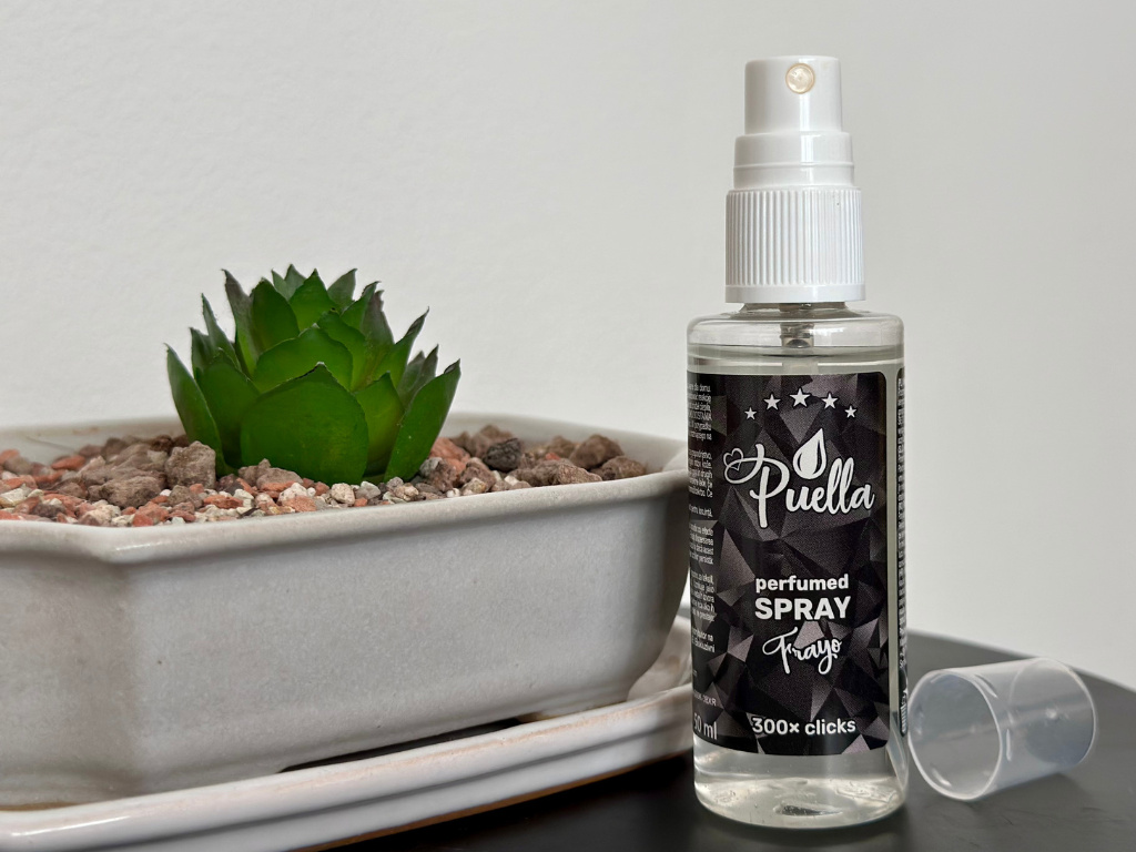 UNIVERZÁLNY BYTOVÝ PARFUM. Puella vône v podobe sprejov na každodenné použitie. Špeciálny parfum vyvinutý pre domácnosť. Vhodné na textil, gauč, do auta alebo na prevoňanie interieru. Nebezpečenstvo! Zloženie: 1-(1,2,3,4,5,6,7,8-oktahydro-2,3,8,8-tetrametyl-2-naftyl)etan-1-on, hexyl-škoricový aldehyd, benzyl-salicylát, linalool, d-limonen. Môže vyvolať alergickú kožnú reakciu. Škodlivý pre vodné organizmy, s dlhodobými účinkami. Uchovávajte mimo dosahu detí. Ak sa prejaví podráždenie pokožky alebo sa vytvoria vyrážky: vyhľadajte lekársku pomoc/starostlivosť. Odstráňte obsah/obal podľa štátnych predpisov.