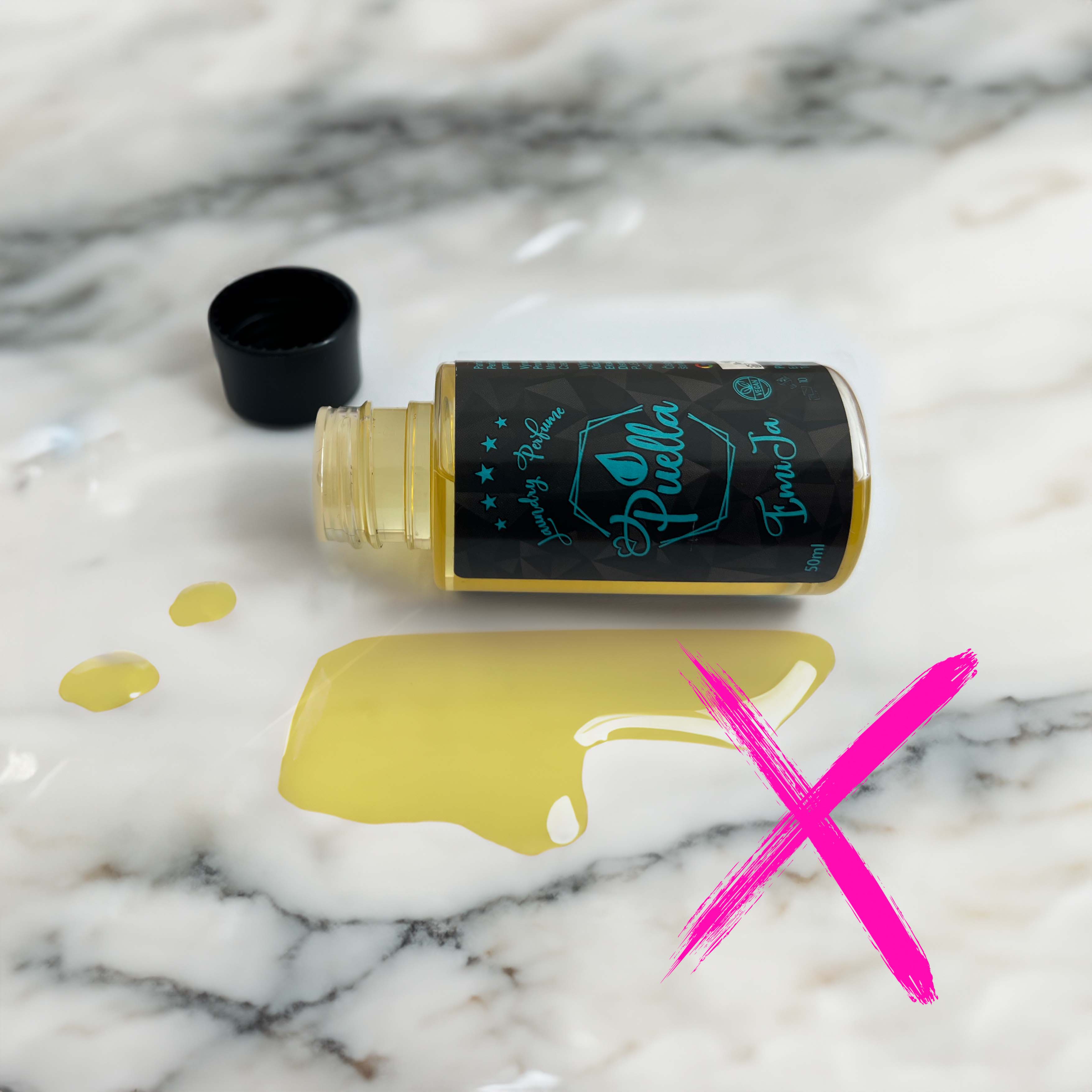 V prípade náhodného vyliatia parfumu na pranie Puella, postupujte nasledovne: